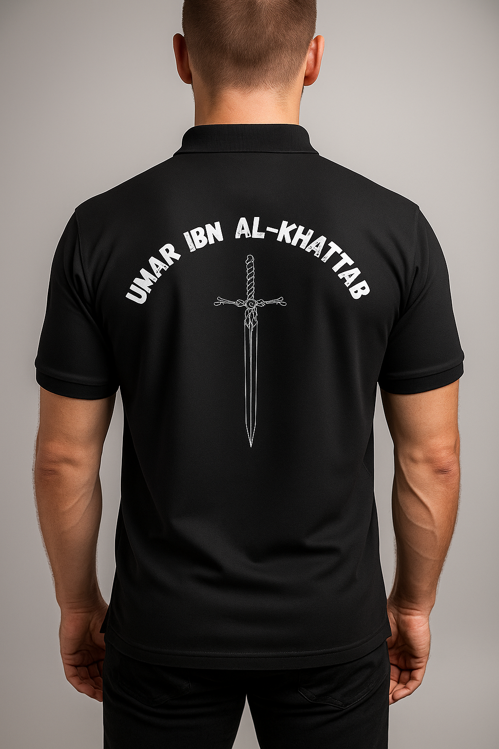 Description: Premium polo t-shirt featuring Hazrat Umar's name on the back. Crafted for comfort and style.