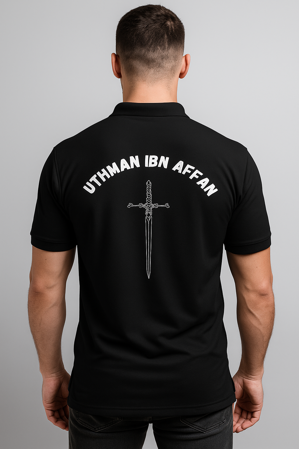 Description: Soft, high-quality polo t-shirt with Hazrat Uthman’s name printed on the back. Ideal for casual wear.