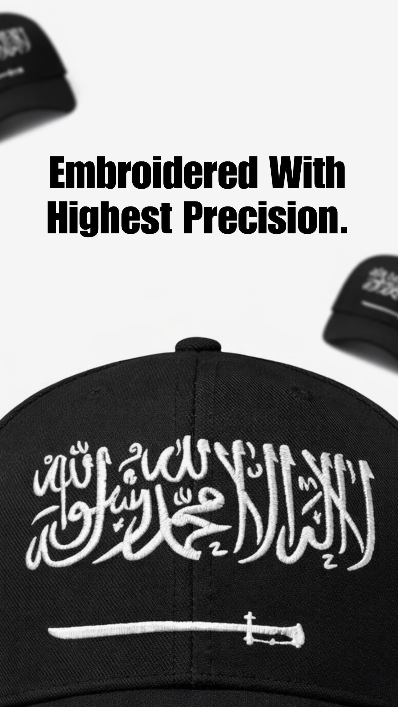Elevate your style with this premium quality cap featuring a beautifully embroidered design of the Kalma (Tayyab) along with a bold sword motif symbolizing strength and faith. Crafted from high-quality materials, this cap combines modern style with deep Islamic meaning – perfect for everyday wear, prayer, or gifting.