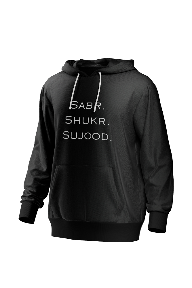 Stay cozy and stylish with our 350 GSM premium terry cotton hoodie featuring the message: "SABR, SHUKR, SUJOOD." This hoodie offers the perfect balance of comfort and faith-based style, ideal for daily wear.