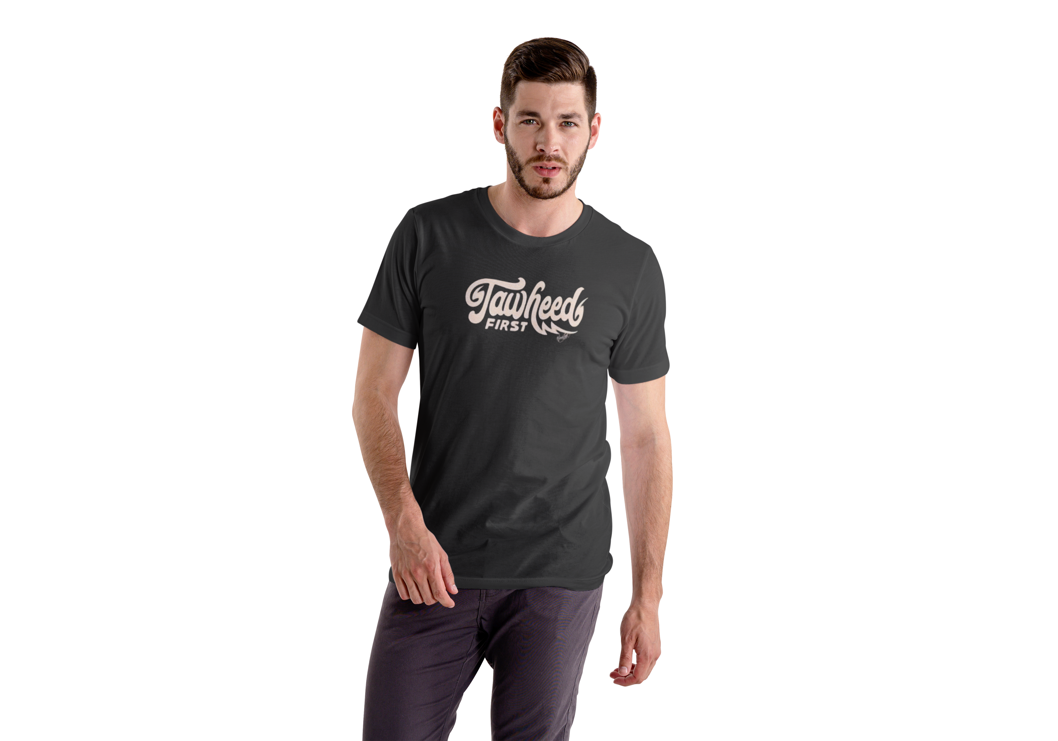 Emphasize the importance of Tawheed with our "Tawheed First" T-Shirt. Crafted from premium cotton, this round neck t-shirt offers both comfort and durability, ideal for everyday wear and conveying a fundamental Islamic message.